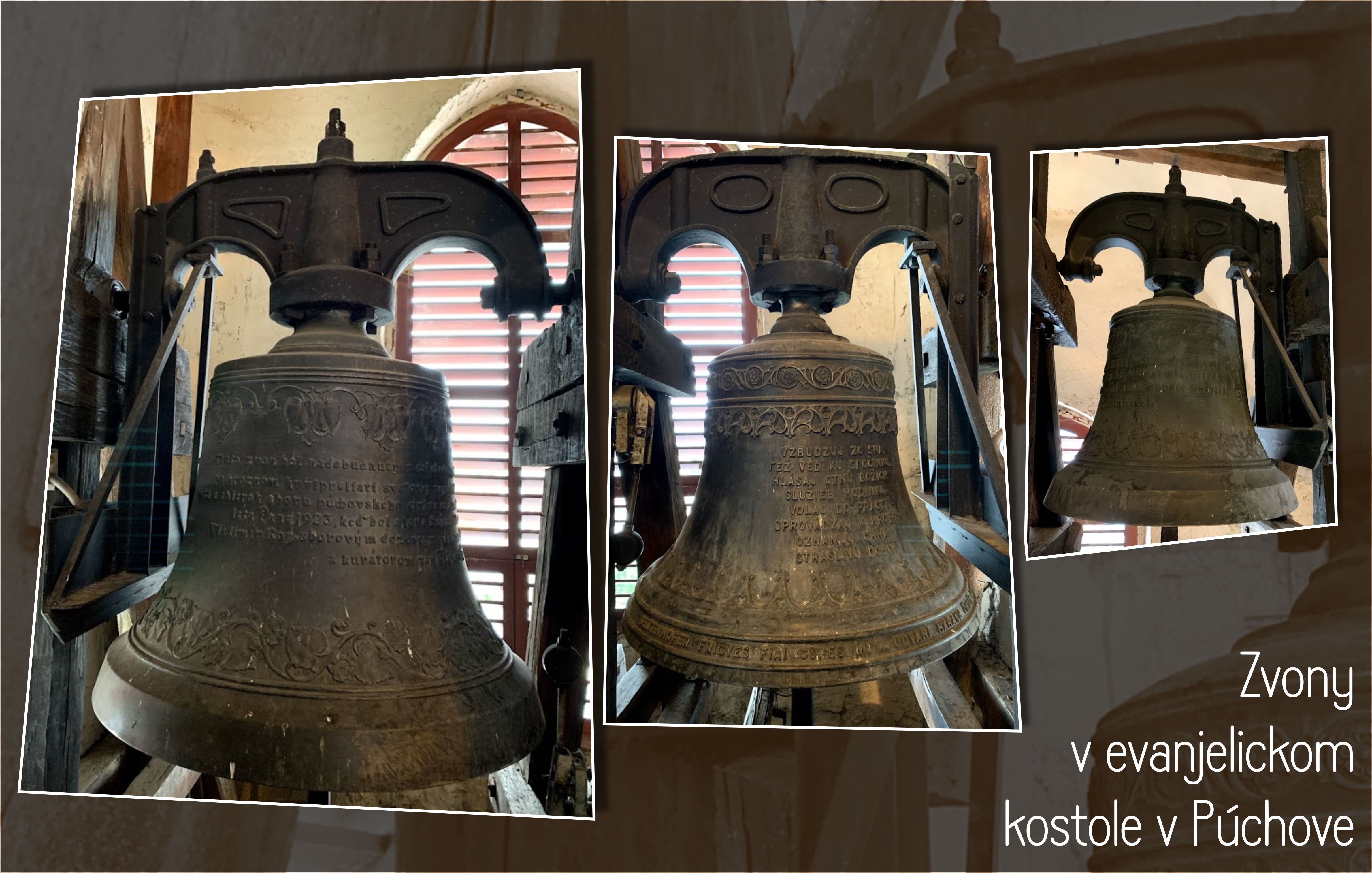 „Tento zvon bol nadobudnutý v oslobodenej vlasti po hroznom kvipreliatí svetovej vojny z dobrovoľných obeti a zbierok zboru púchovského cirkve ev. a.v. na Slovensku leta Páne 1923, keď bol slova Božieho kazateľom Vladimír Roy, sborovým dozorcom Ján Országh a kurátorom Ján Plánovský.“