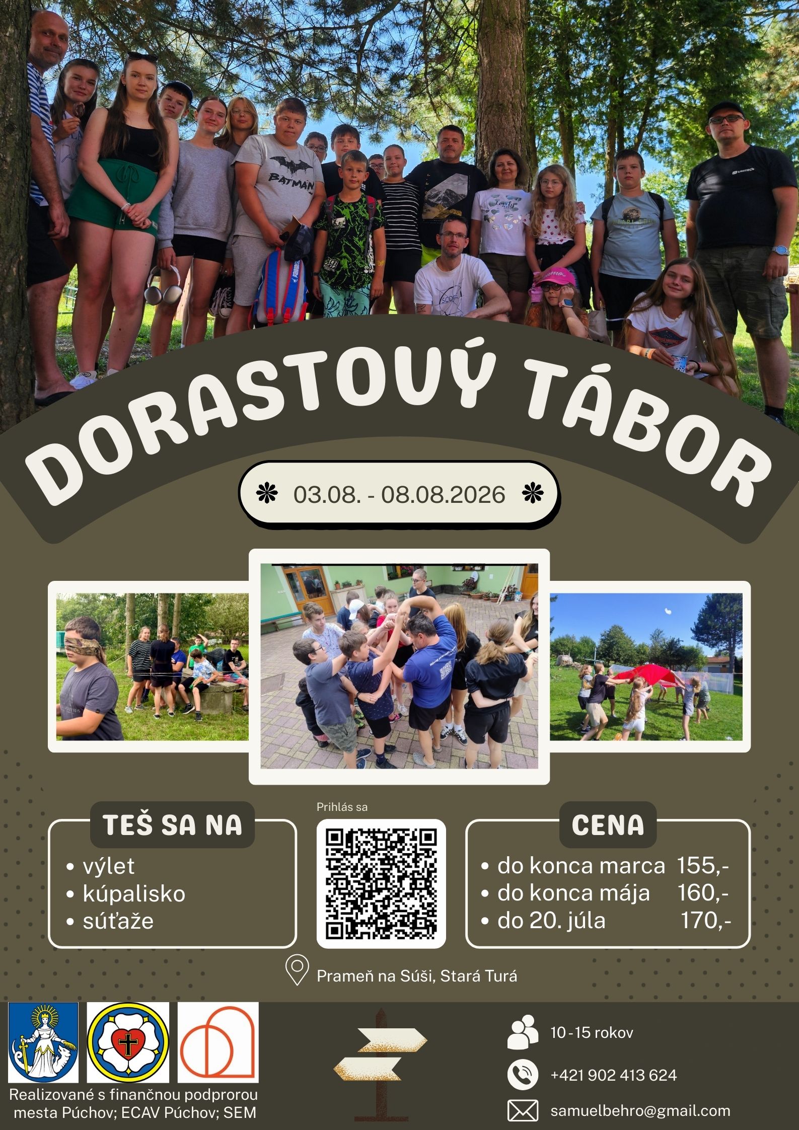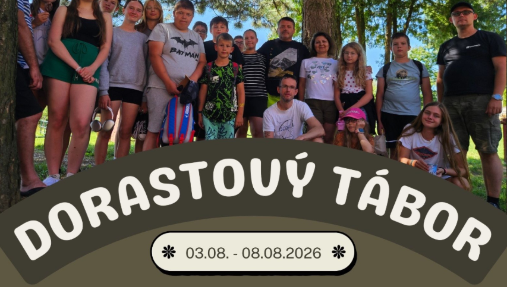 Prijmite pozvanie na dorastový tábor 2026, ktorýsa uskutoční 3.-8.8.2026. Je určený pre deti vo veku 10-15 rokov. Mesto: Prameň na súši, Stará Turá.